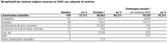 Liste de quelques unes des catastrophes naturelles majeures survenues en 2005: